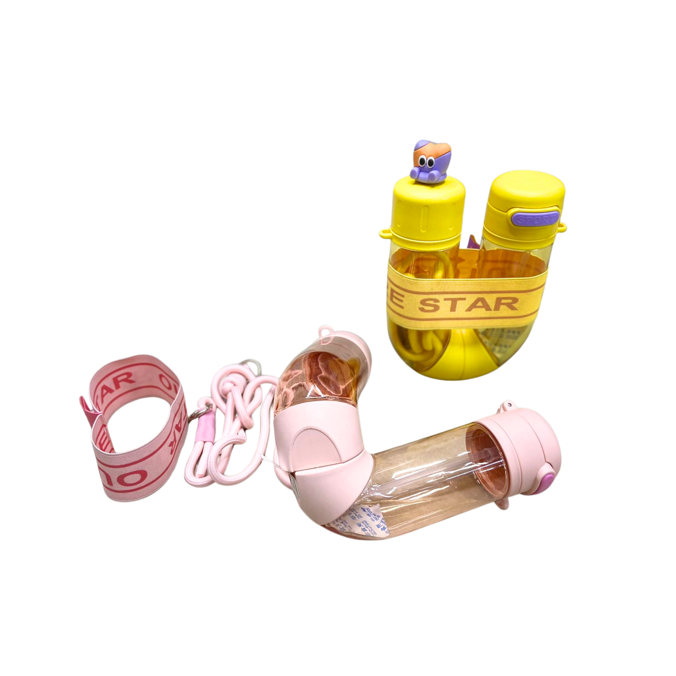This 700ml kids water bottle features a dual compartment design, allowing two different drinks in one bottle. Cute design, leak-proof lids, and easy carry strap make it perfect for kids.