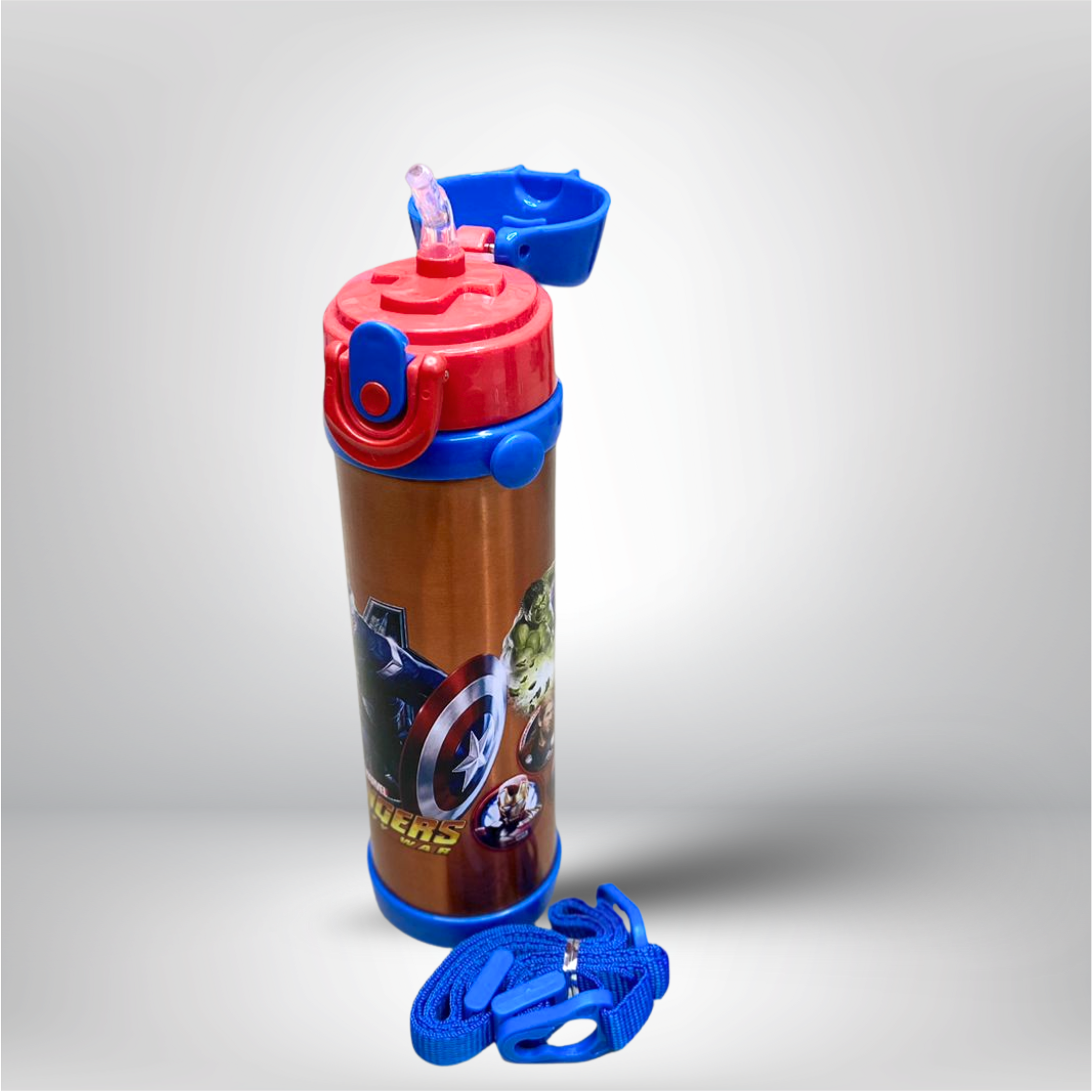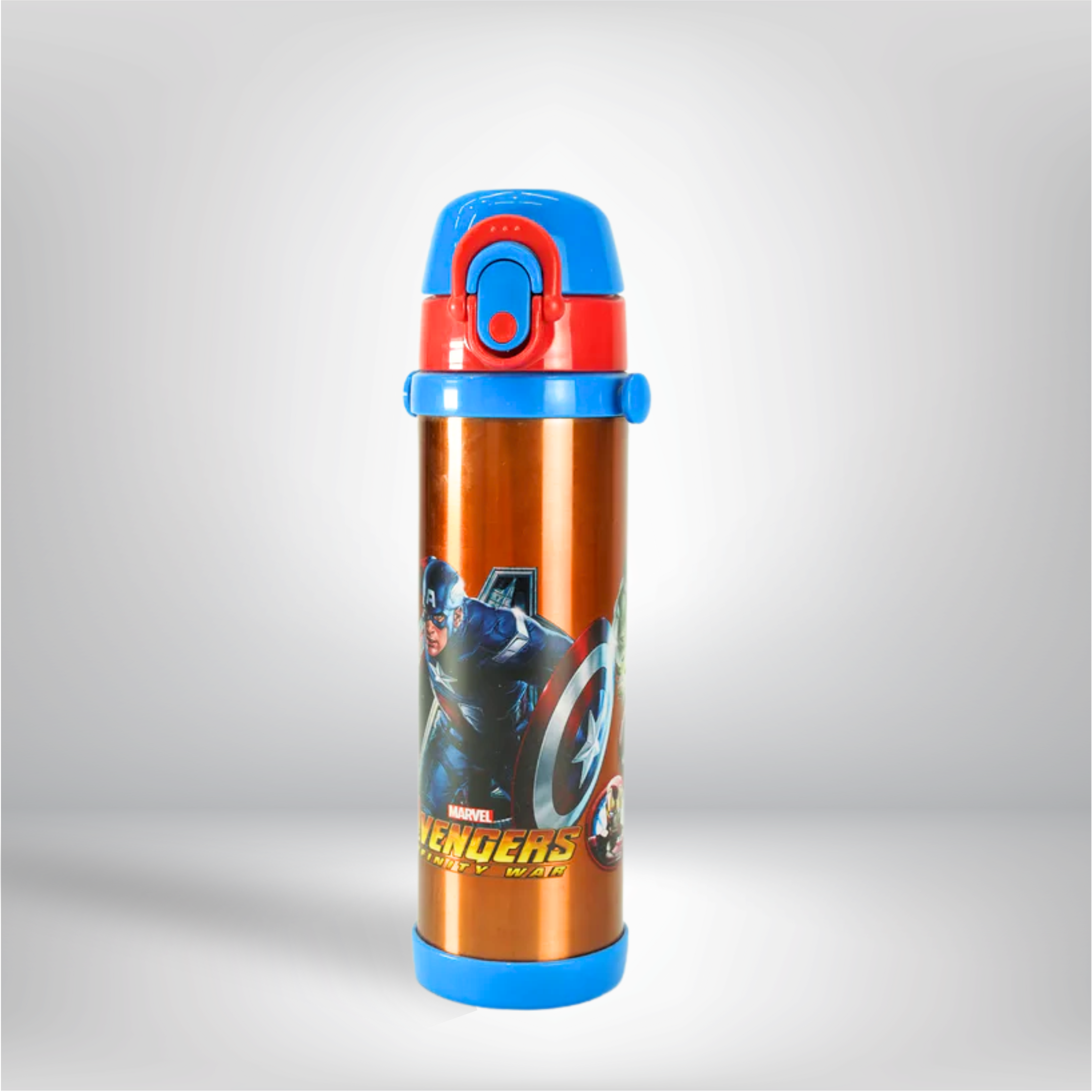 This Avengers stainless steel water bottle comes with a strong metal body and stylish superhero design.