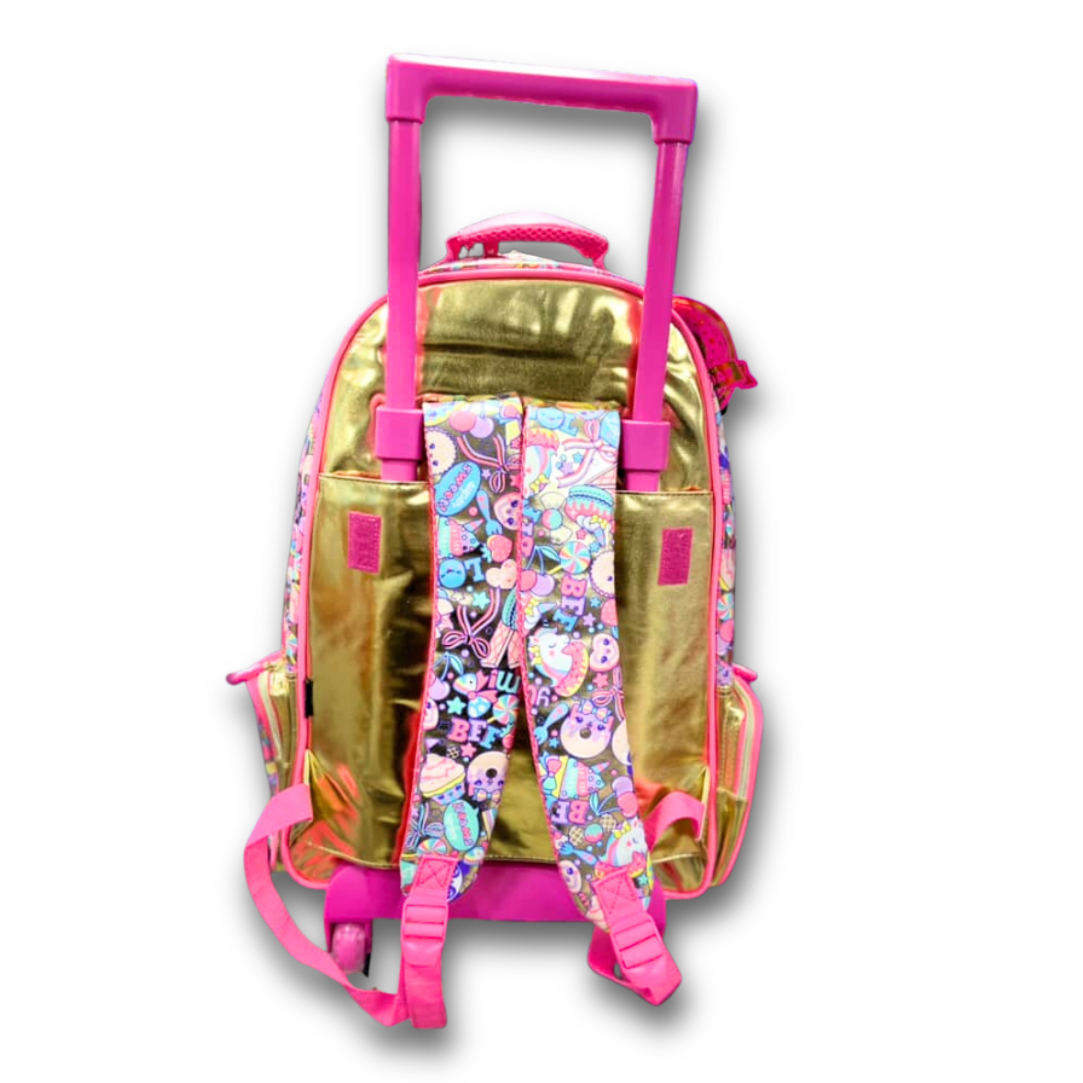 PU + Sparkly, stylish, and full of fun — this Smiggle Flashy Sequin Trolley Bag is a perfect choice for girls who love glitter and bright colours! With a shimmering gold sequin top panel and a colourful cartoon-print bottom, this 20″ rolling backpack stands out instantly. Smooth wheels, strong build, and spacious compartments make it ideal for Grade 1–5 girls for both school and travel.
