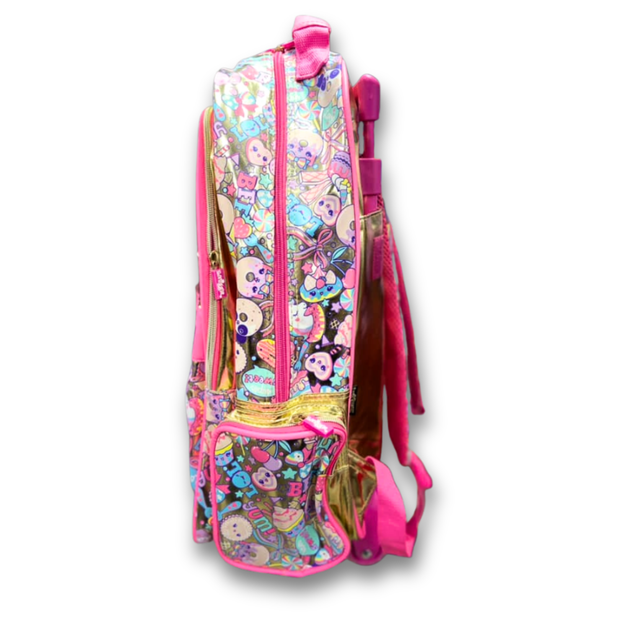 Original Smiggle Flashy Gold Sequin Trolley Bag – 20 Inch | Grade 1–5 School & Travel Rolling Backpack for Girls