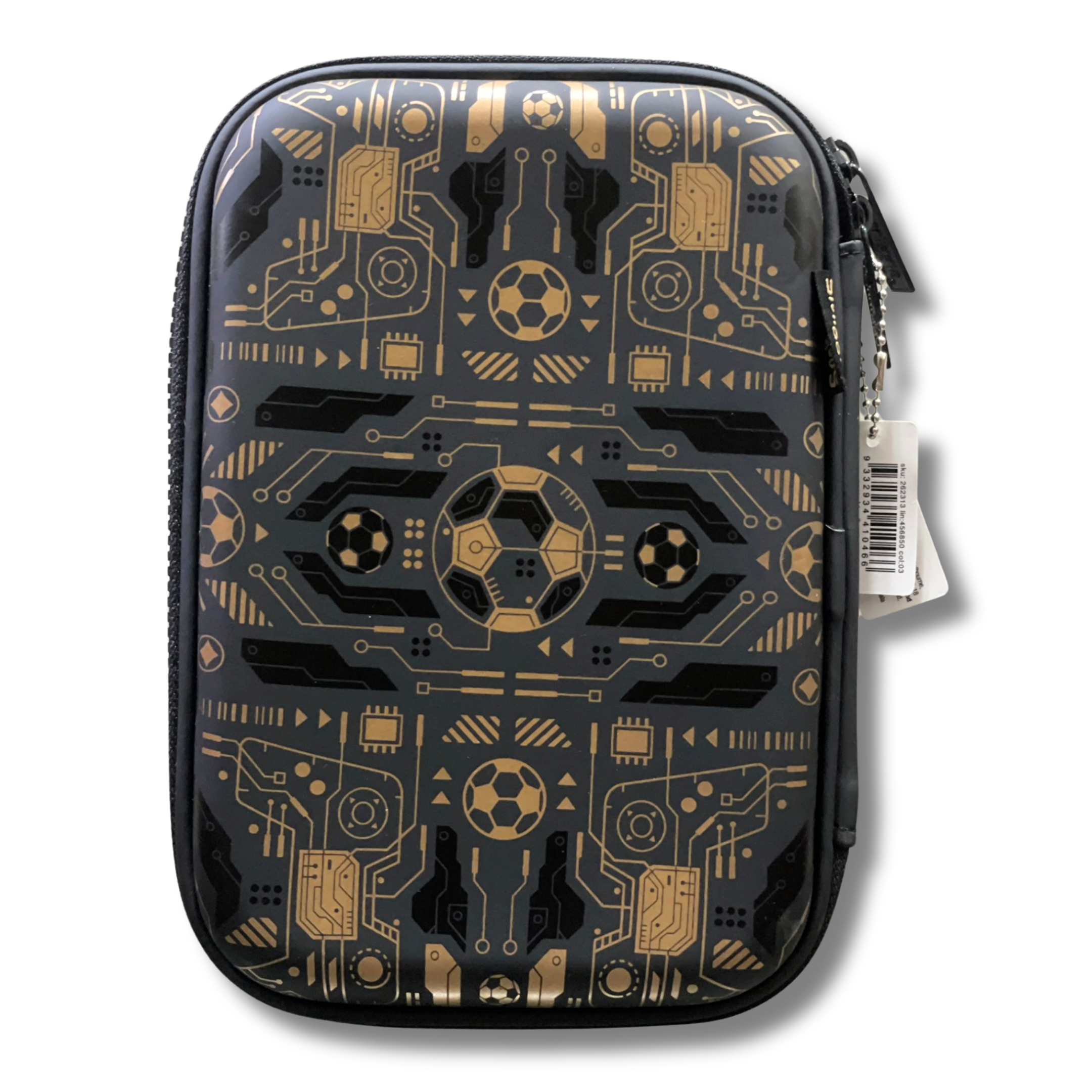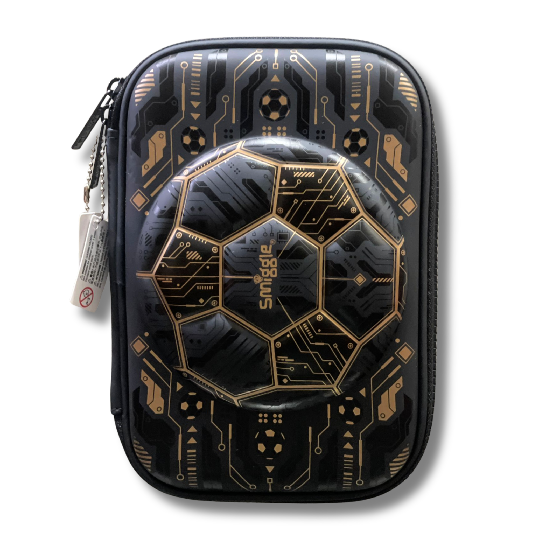 A bold, sporty pencil case with a 3D football design and metallic gold accents. Perfect for boys who love football and want a stylish, durable organizer for school.