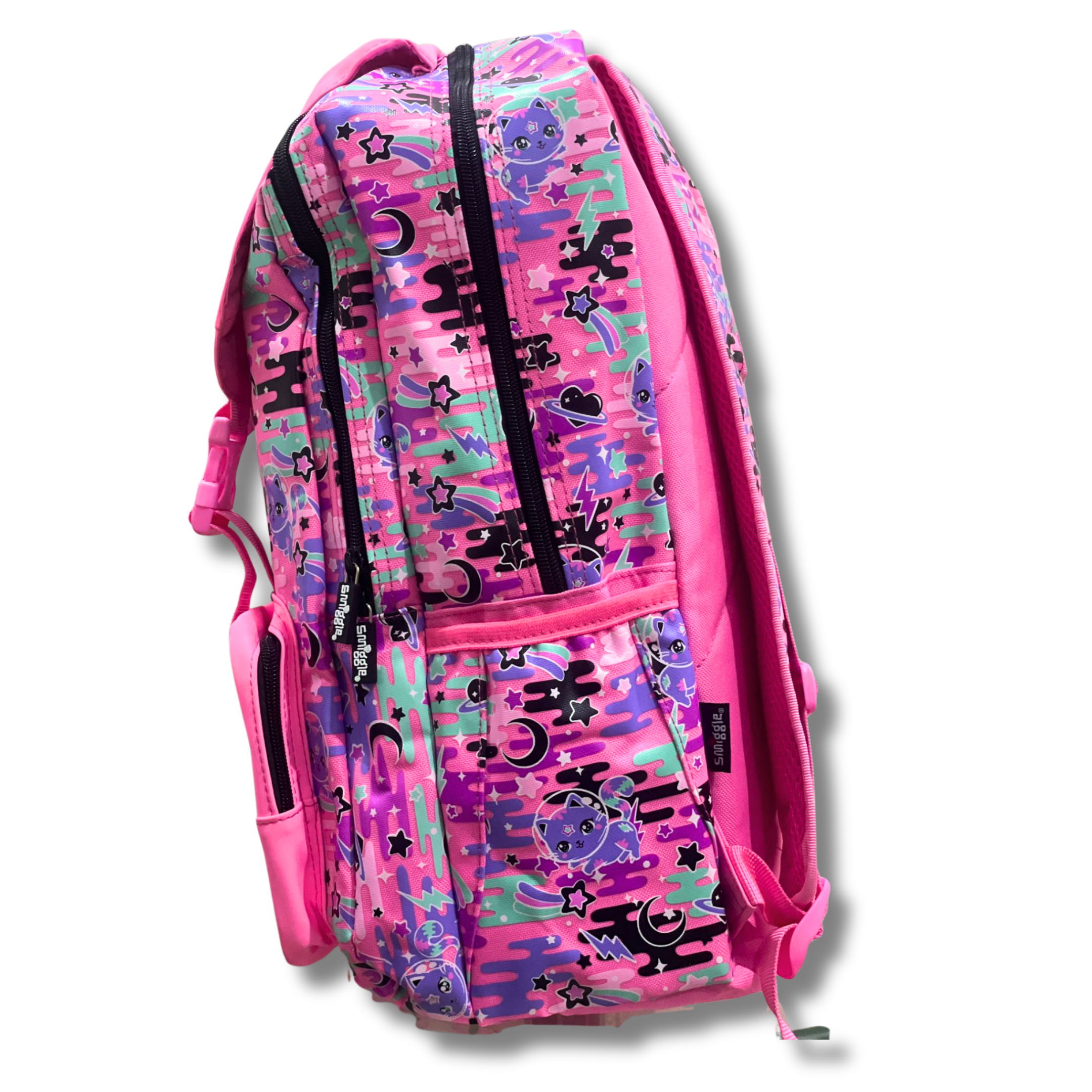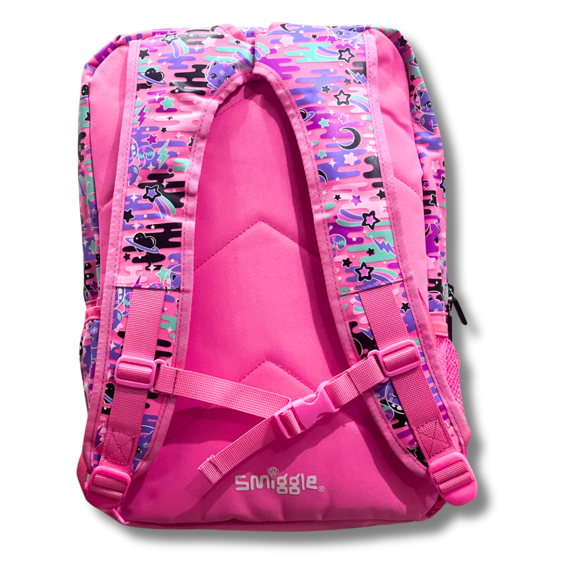 Smiggle Cosmic Kitty Pop Pink Foldover School Backpack (18 inch)