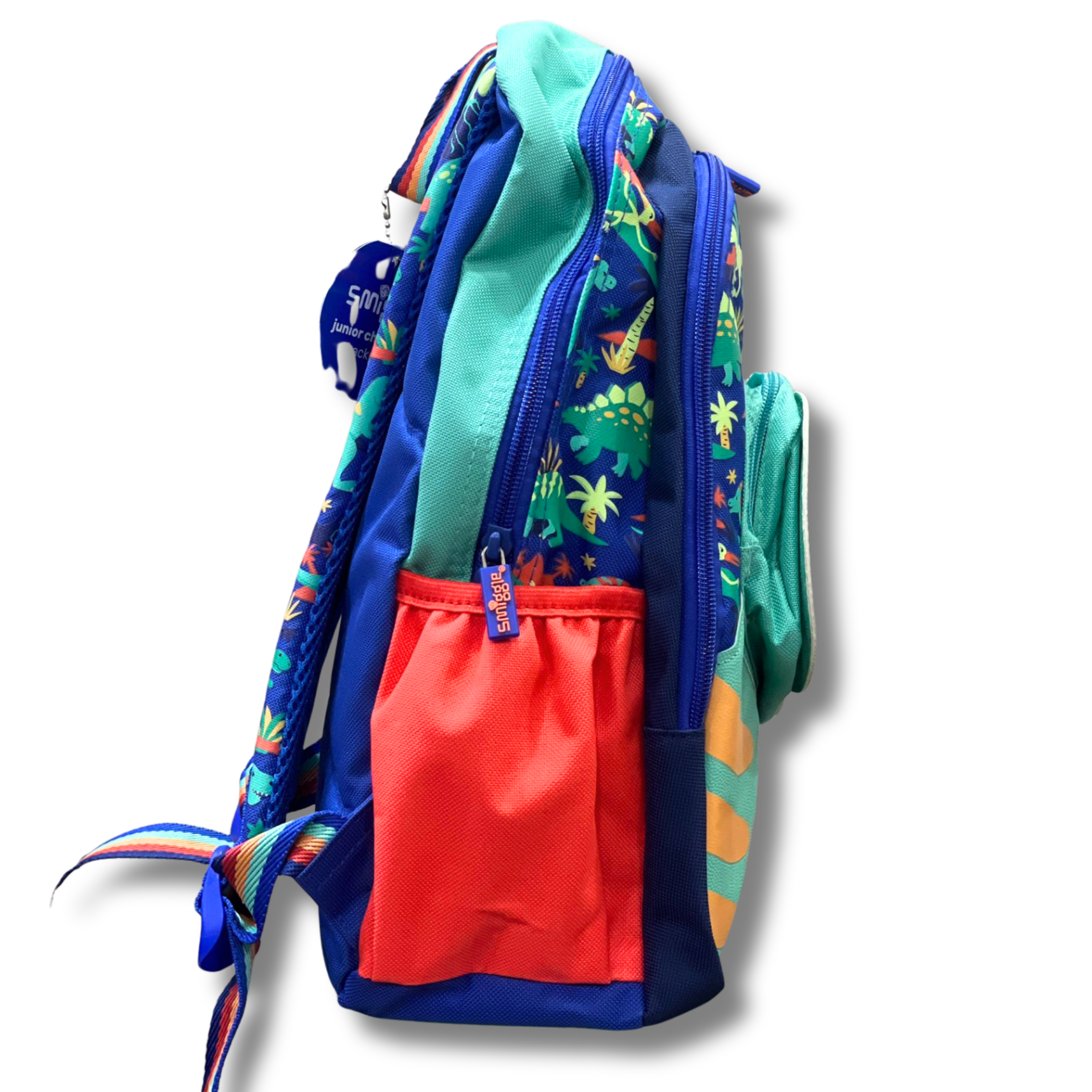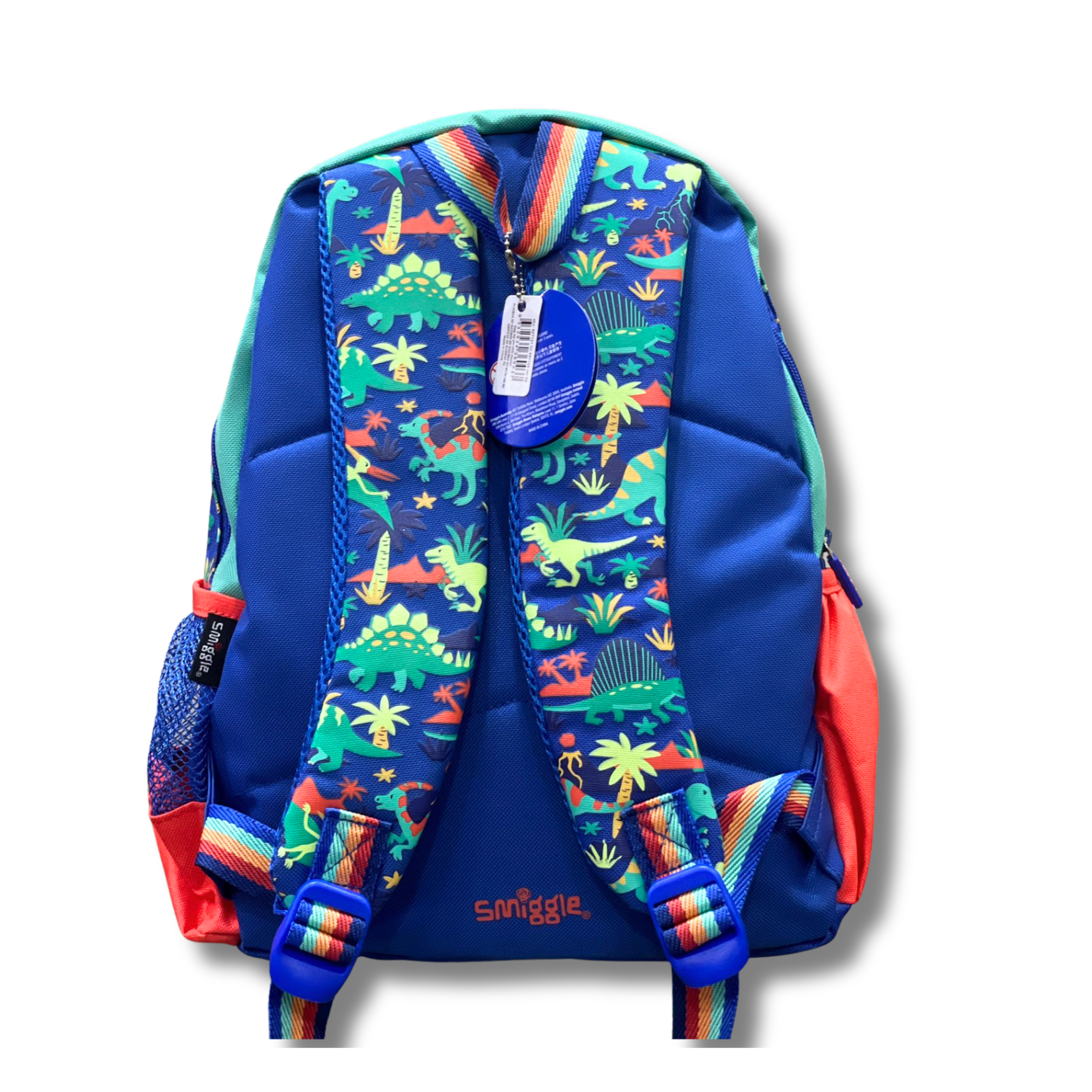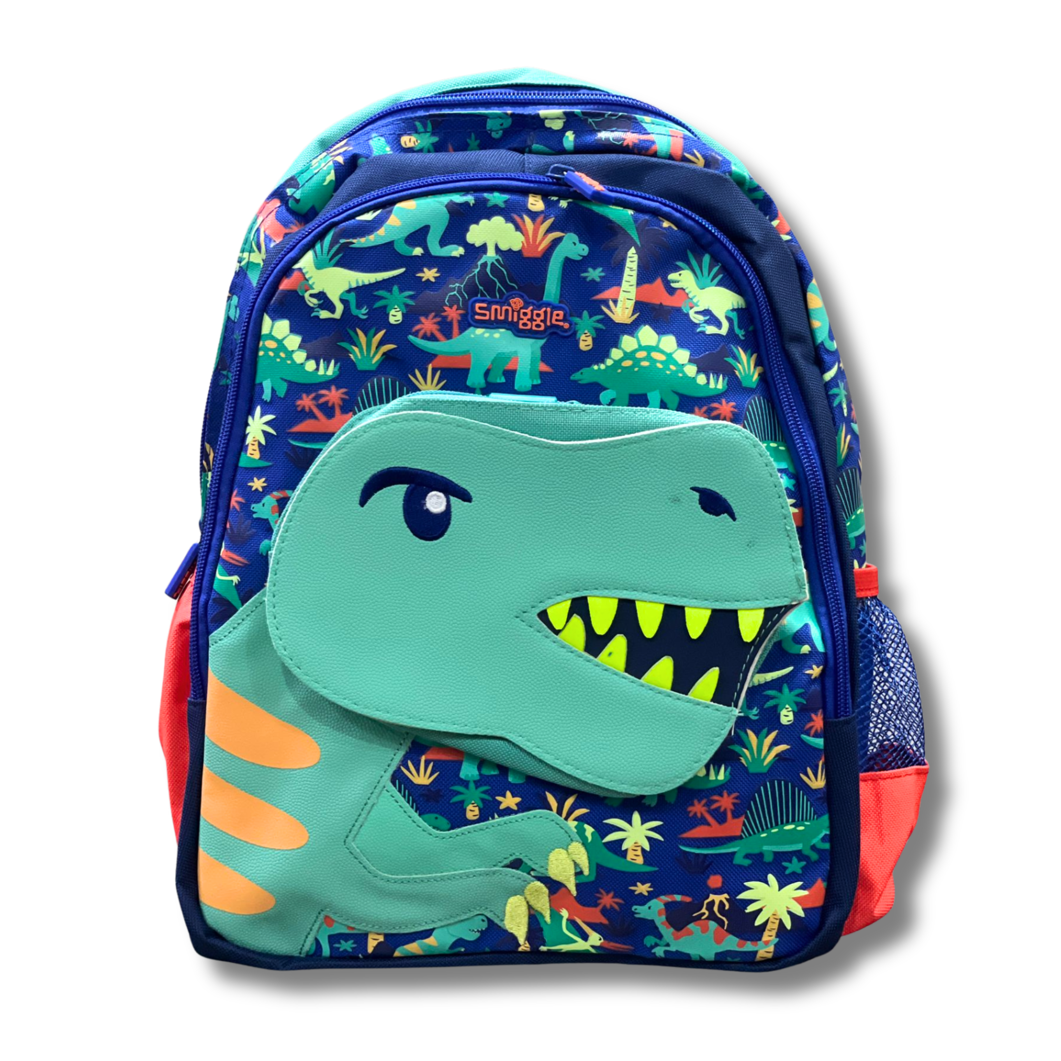 Make every school day exciting with this bold and fun Smiggle Dino Roar 14-inch Backpack! Featuring a big 3D T-Rex face, bright colours, and a playful dinosaur print — perfect for little boys who love dinos.