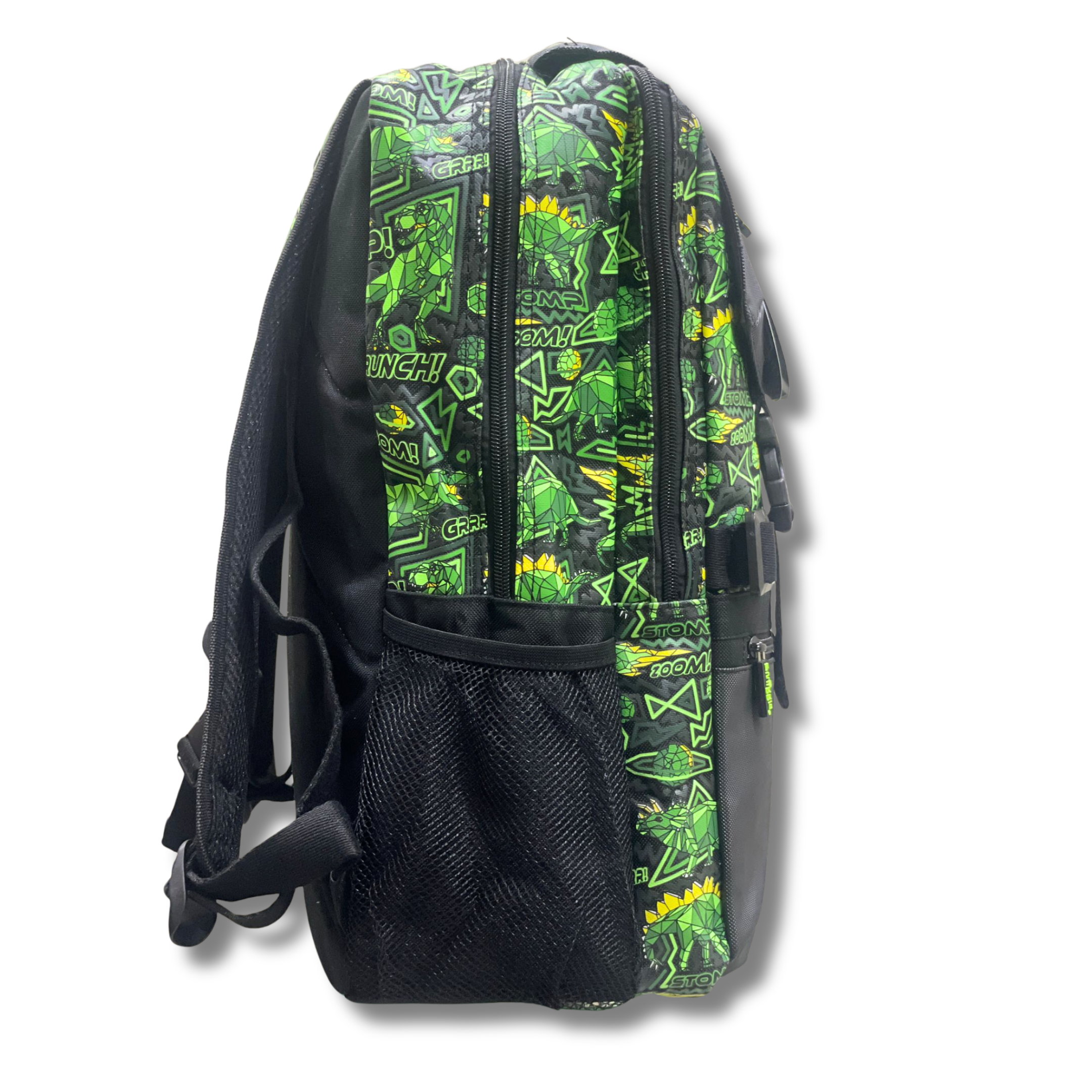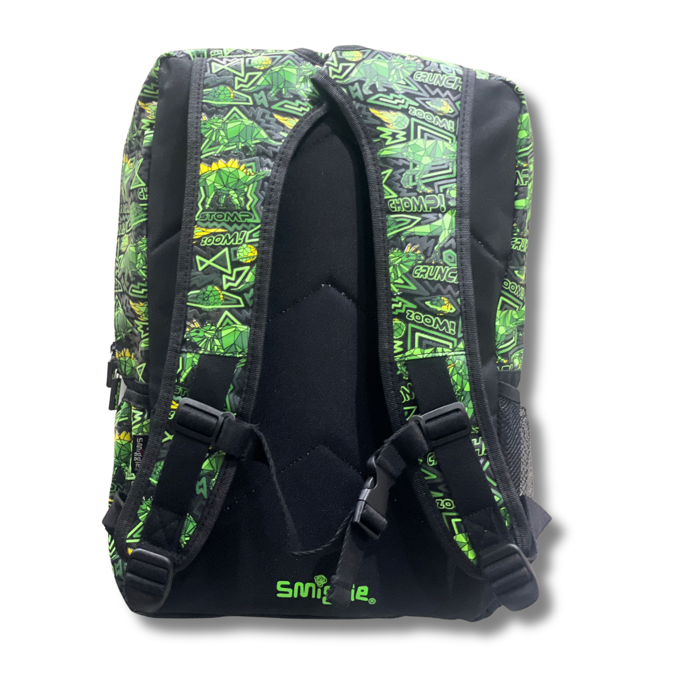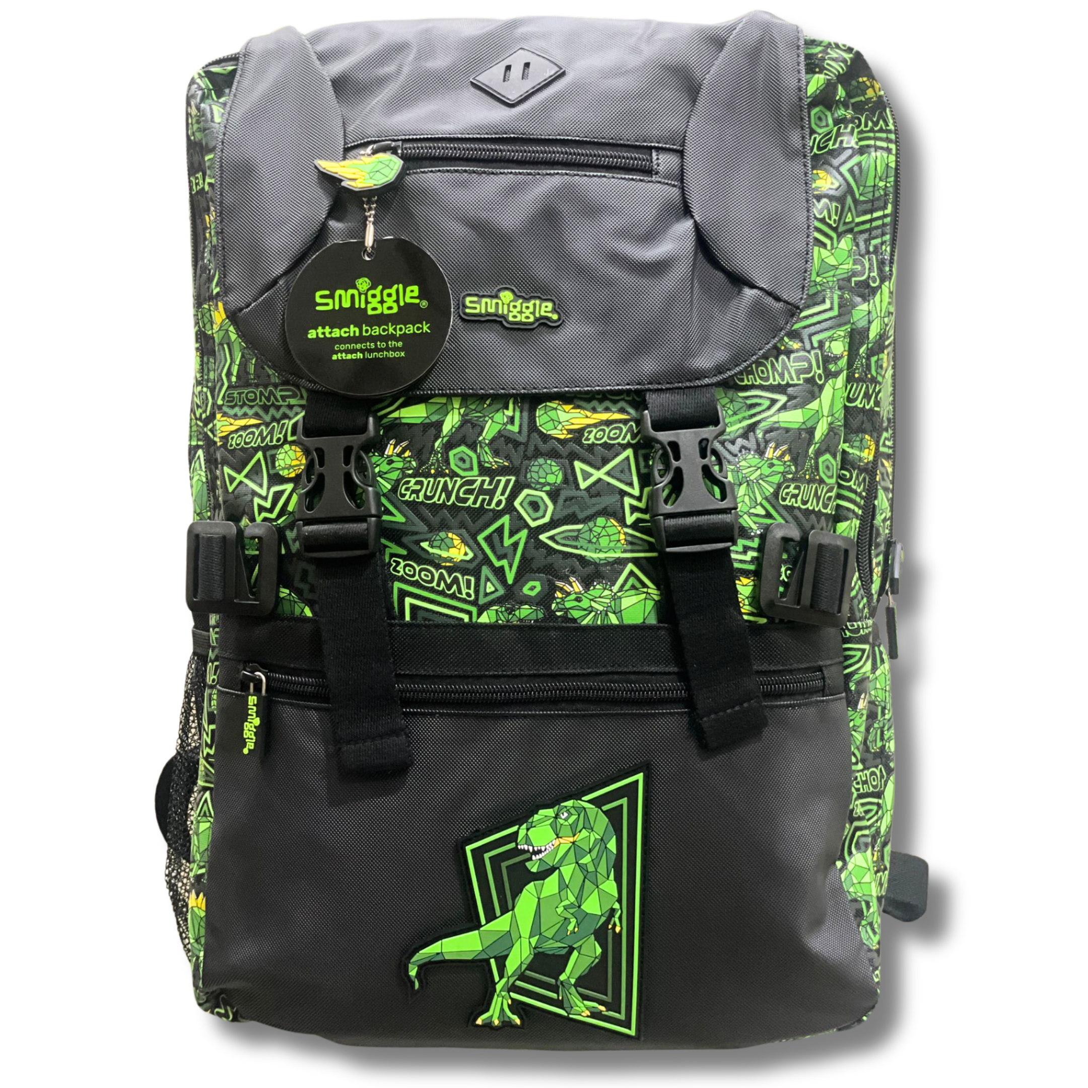 Get your little dino lover ready for big adventures! The Smiggle Dino Tech Backpack features a bold geometric T-Rex design with neon green comic-style graphics. Strong, stylish, and super spacious—perfect for school, sports, and everyday use.