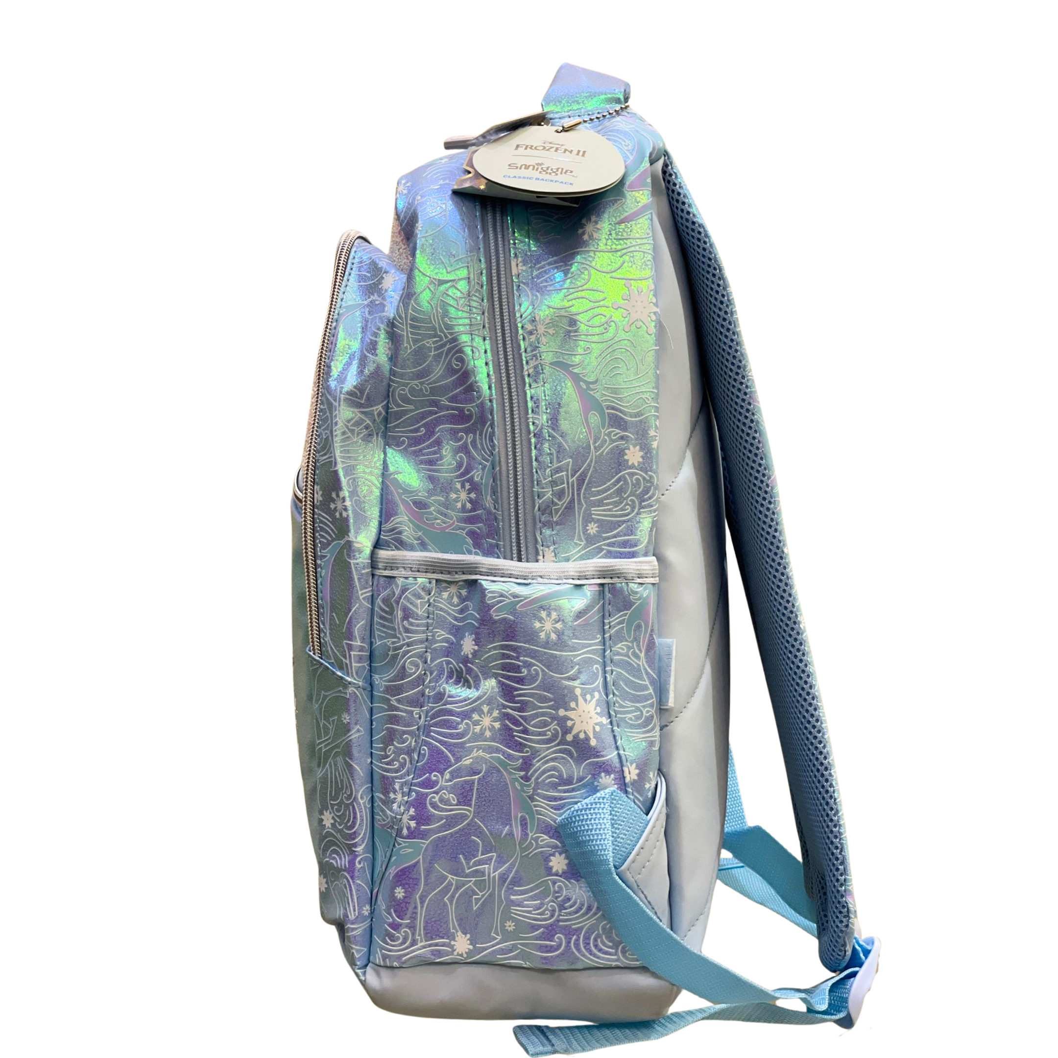 Make every school day magical with the Smiggle Frozen II Elsa Glitter Backpack! Featuring a sparkling Elsa design with icy blue tones, this 18-inch backpack is perfect for girls who love Frozen. Spacious, durable and comfortable—ideal for carrying books, lunch, and all school essentials in style.
