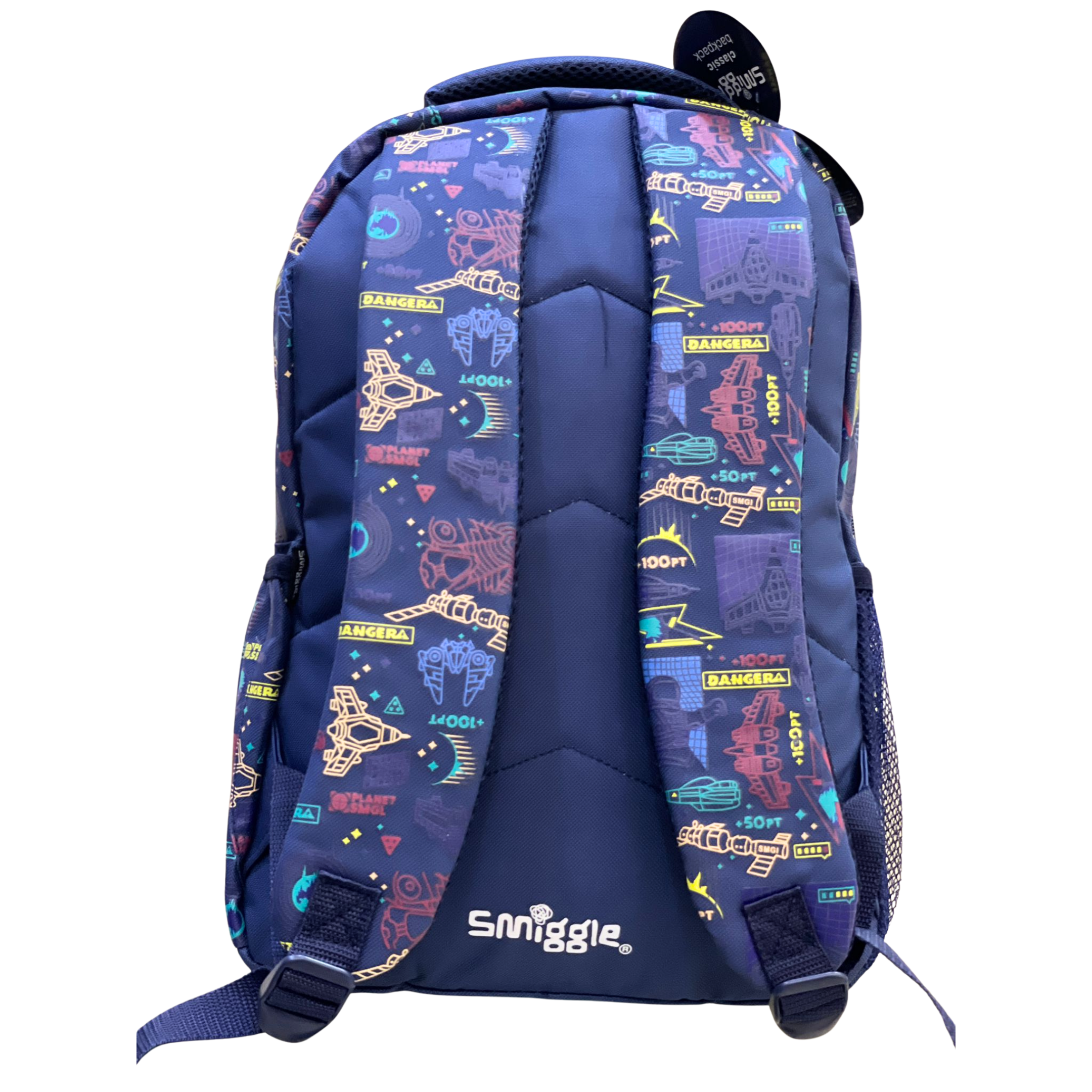 Let your child explore the universe every day! The Smiggle Galaxy Astronaut Navy Backpack features a bold space theme with a futuristic astronaut design. Built for comfort and durability, this 18-inch backpack offers ample storage for books, lunch, and school essentials—perfect for boys who love space adventures.