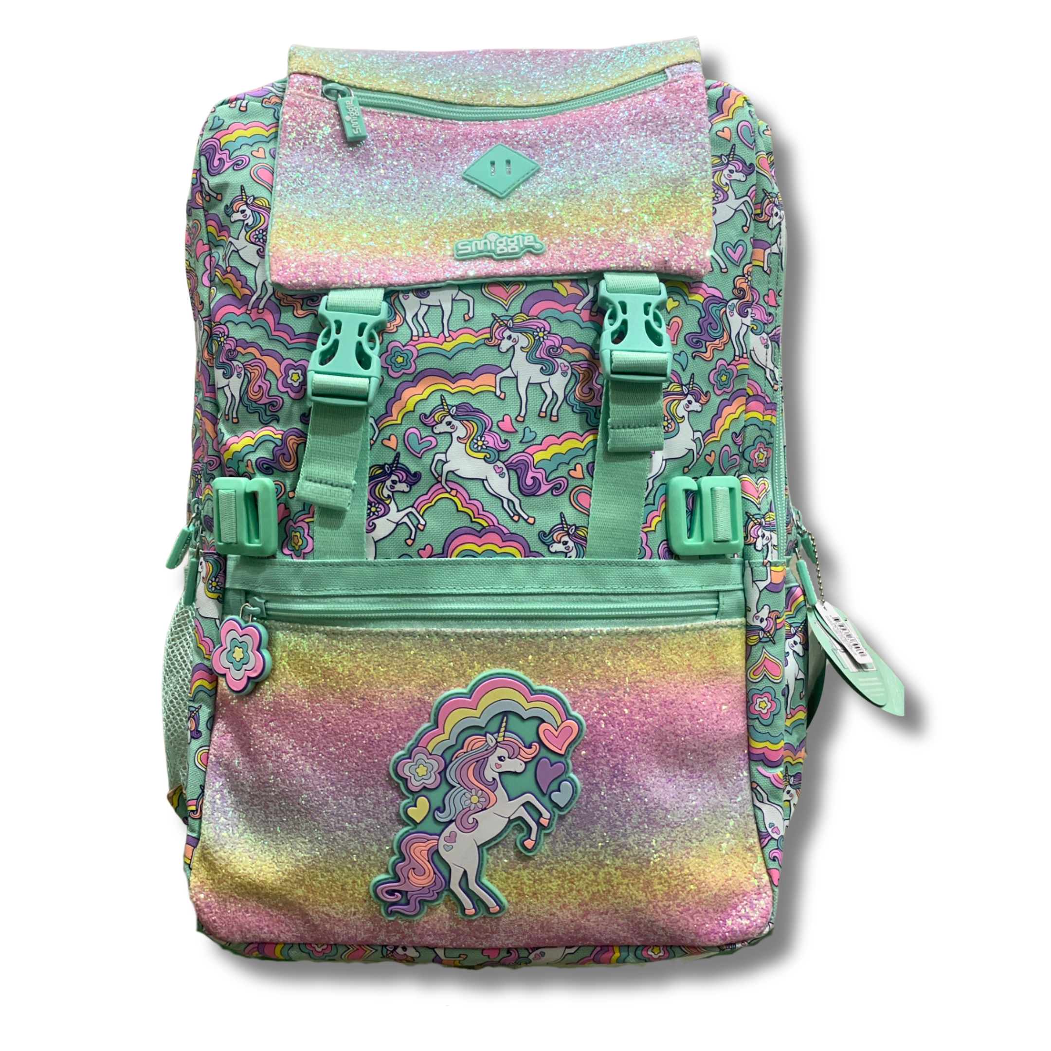 Smiggle Rainbow Unicorn Sparkle 18” Foldover School Backpack