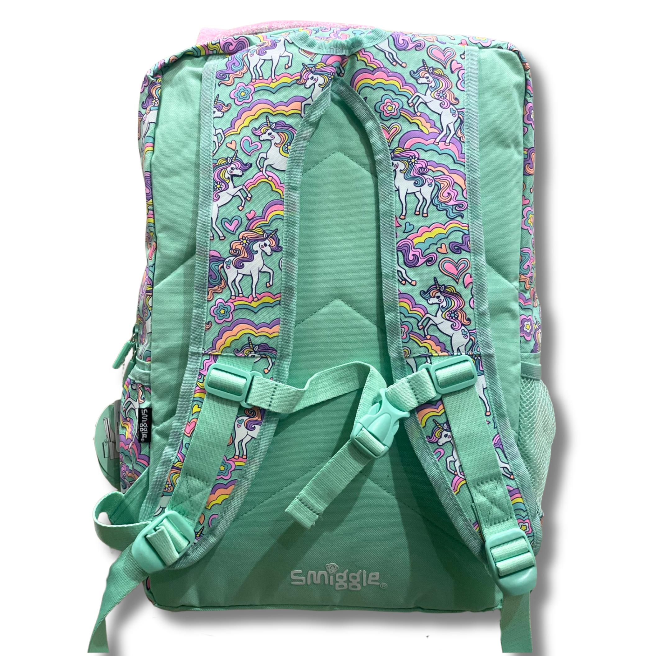 A magical burst of colors, sparkles, and unicorn vibes! This stunning Smiggle Rainbow Unicorn Backpack is perfect for girls who love glitter and rainbows. With its pastel ombré shimmer flap, adorable unicorn graphics, and roomy compartments—this bag brings style, comfort, and functionality together. Ideal for school, travel, and everyday adventures!