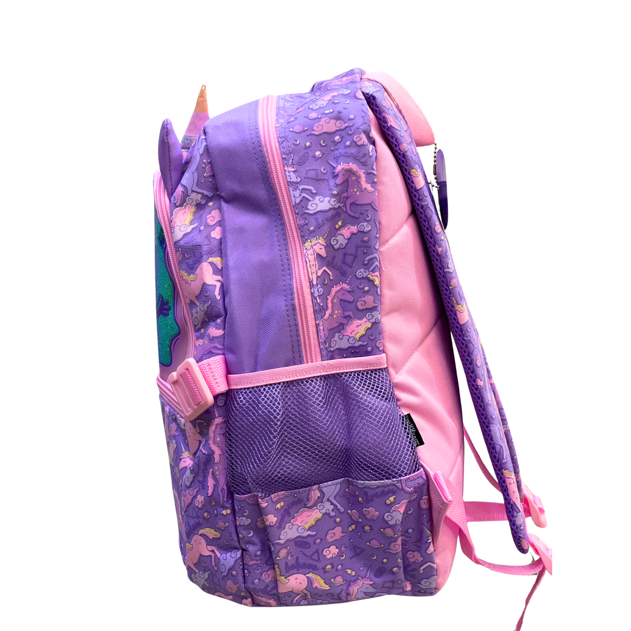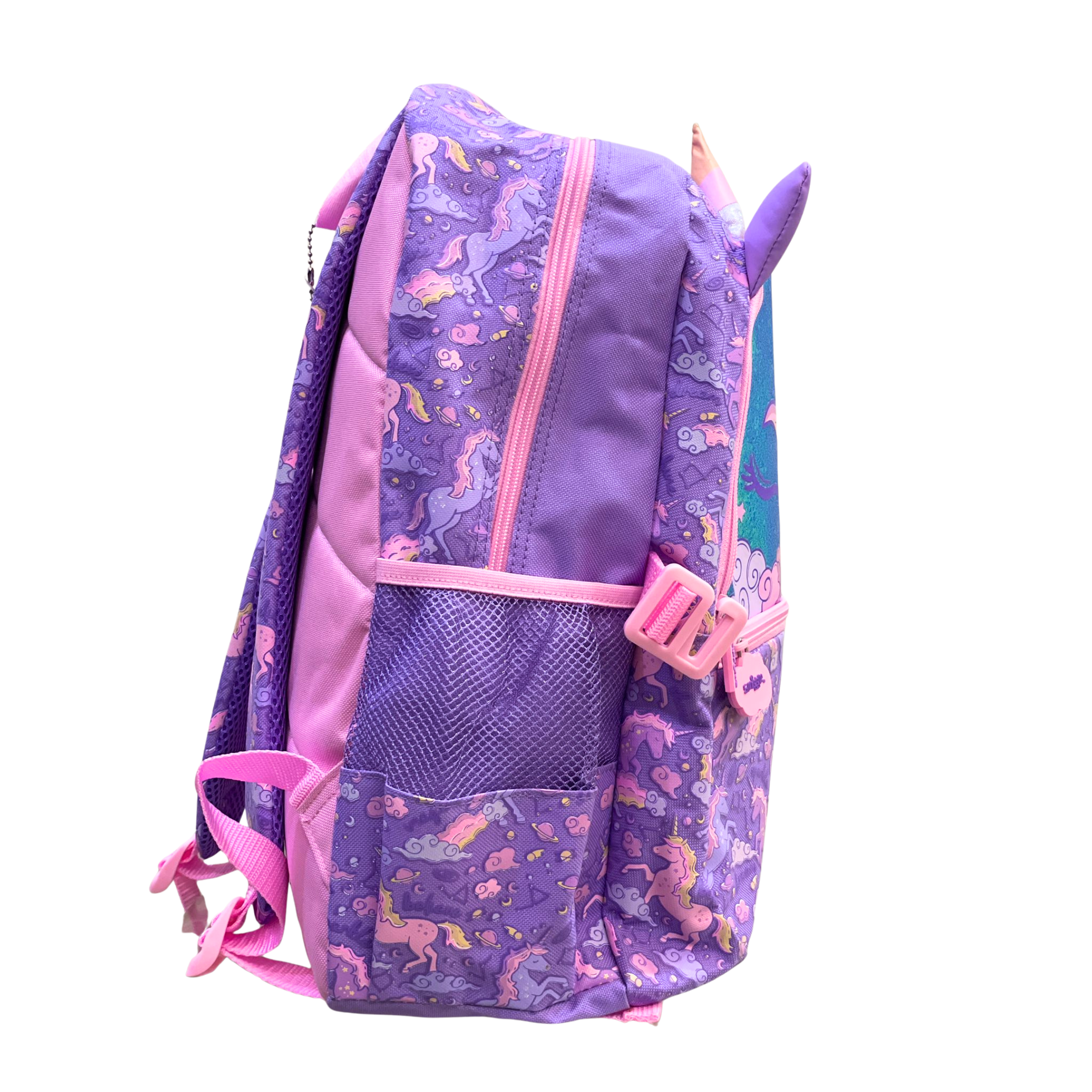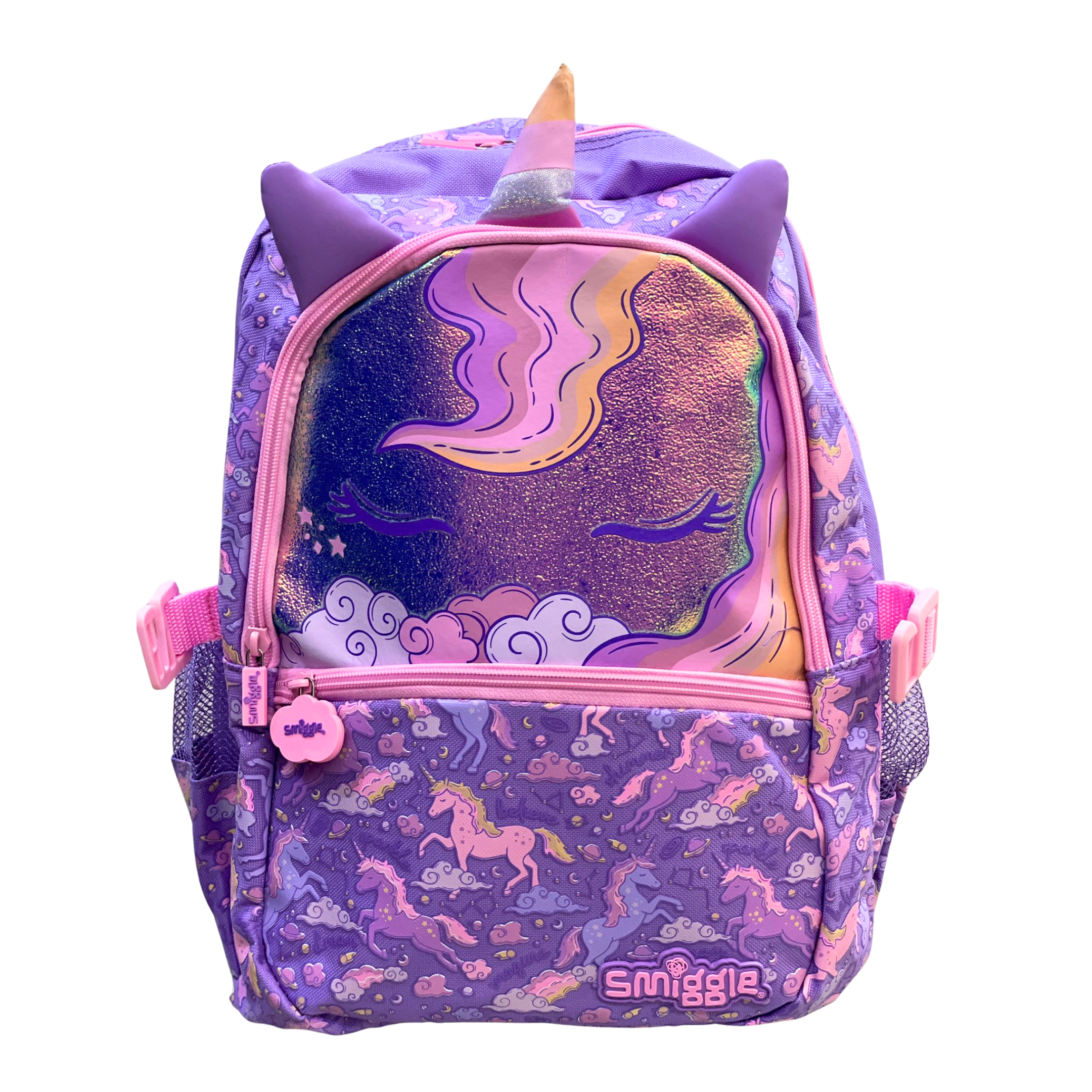 Make school truly magical with this 18-inch Smiggle Unicorn Fantasy Backpack! Featuring a shiny holographic front, 3D unicorn horn & ears, and a dreamy all-over unicorn print — perfect for girls who love sparkle, fantasy, and unicorn charm.